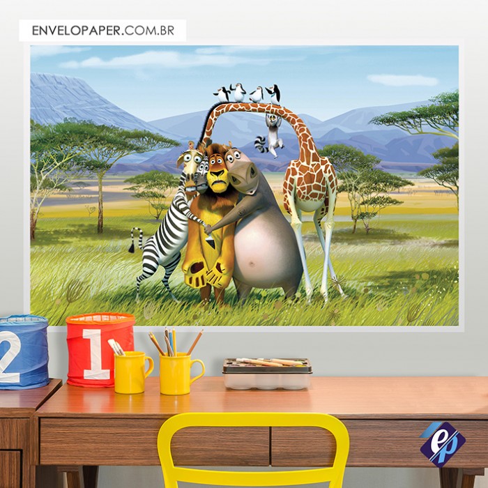 Painel Fotográfico Adesivo Infantil - Madagascar 150x100cm